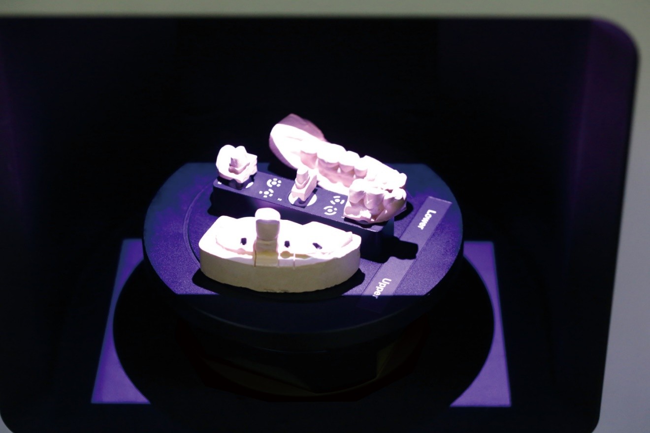 A maxilla, az állkapocs és a felépítmények egyidejű szkennelésével akár 50%-kal is csökkenthető a munkaidő.