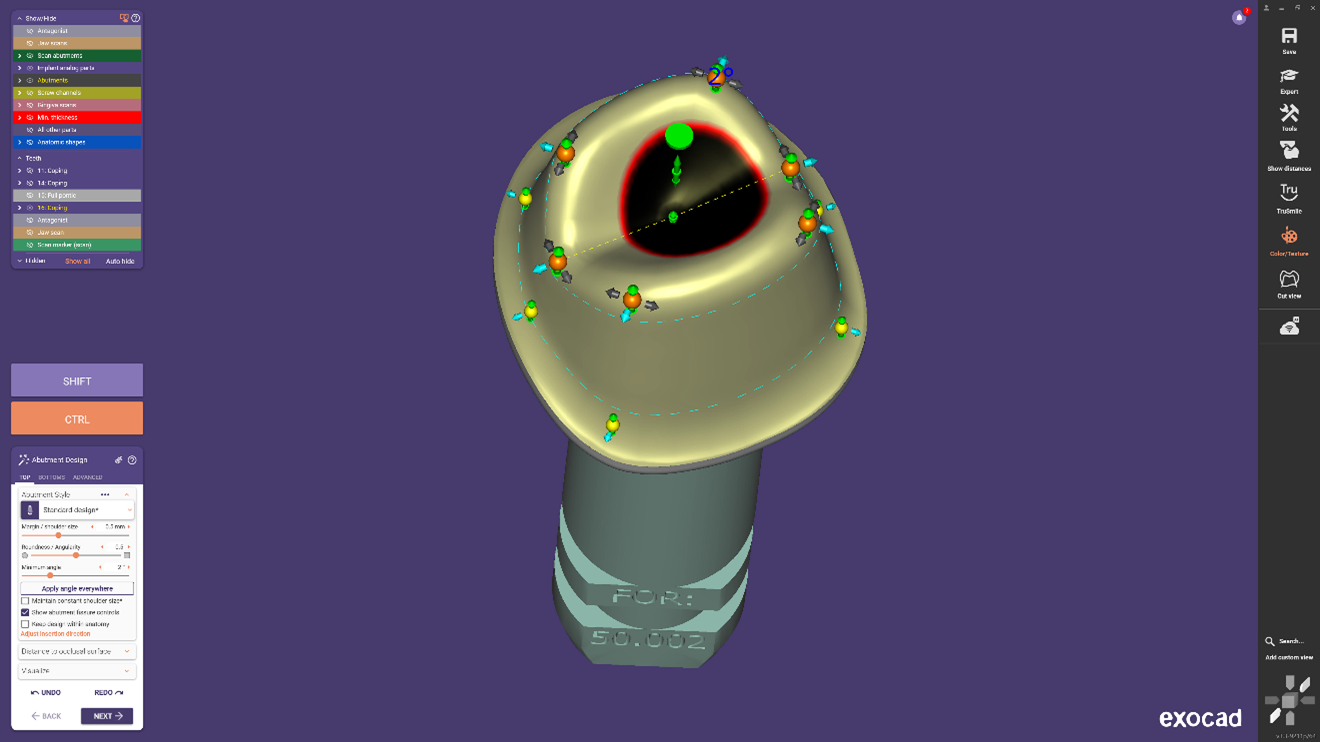 Egyedi felépítménytervezés: Az exocad Implantátum modul – az egyedi felépítmények tervezése egyszerű és egyértelmű.