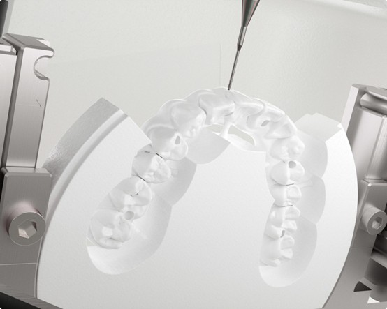 A nagy pontosságot és esztétikát igénylő területekre tervezett 90 fokos függőleges marás precízen textúrázza a labiális (vagy bukkális) felszíneket, lehetővé téve a változatosabb fog esztétikát. Ez a megközelítés jelentősen csökkenti a komplex utófeldolgozási időt és csökkenti a munkaköltségeket.
